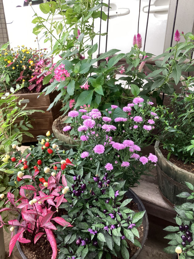 教室前のお花もやっとこさ秋バ-ジョンに入れ替えをしました。気にしていませんでしたが、紫色が多いですね・・・